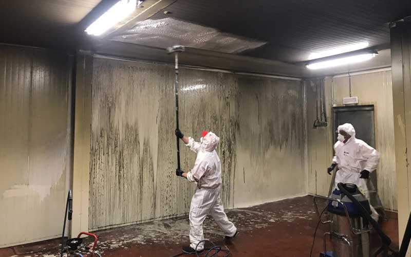 - Nettoyage et désinfection approfondis : traitement des murs, sols, plafonds et équipements.